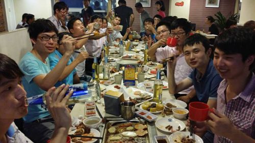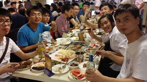 6月25日,在景寧人力黃艷老師的帶領(lǐng)下,已成功就業(yè)的學(xué)生們?cè)诔啥即何趼肪鄄停e杯暢飲,慶祝職業(yè)生涯的到來。